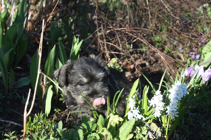 Общий вид. Небольшого размера, жесткошерстная, весьма крепкая, в меру мускулистая, скорее коренастая, чем высоконогая собака, формат квадратный. Без каких-либо черт «карликовости». Смелая, выносливая, бдительная, несмотря на свои мелкие размеры. Довольно крупная голова, украшенная кустистыми бровями, усами и бородой, с веселым взглядом темных глаз. Уши купированные, стоячие(сейчас по желанию,можно уши не купировать). Своеобразие шнауцера состоит в контрасте забавной внешности с важностью и серьезностью поведения. Небольшой рост делает ее удобной для содержания в квартирных условиях... Цвергшна́уцер (нем. Zwergschnauzer от zwerg — гном, schnauze — морда, миниатюрный шнауцер, карликовый шнауцер — самая маленькая по размеру (высота в холке 30—35 см) служебная собака в мире. Несмотря на забавную внешность, цвергшнауцер — это очень серьезная собака, бесстрашная, чуткая, внимательная, легко дрессируемая и преданная хозяину. Цверги очень любят детей, ребёнку всегда можно доверить и заботу о собаке, и прогулки с ней... Цверги очень хитрые и настойчивые, только если хозяин его перехитрит и переупрямит, докажет, что он, хозяин, умнее и сильнее, то цвергшнауцер станет "комфортной" собакой, прекрасно понимающей правила поведения на улице и в вашем доме, цвергшнауцеры хорошие поисковики и охранники. Цвергшнауцер прекрасно ладит с детьми, у него веселый и жизнерадостный характер. В отличие от большинства пород небольшого размера он не эгоист, открыт для общения и может стать другом и товарищем по играм вашему ребенку. С цвергом удобно путешествовать, он отличный компаньон для свей семьи. Благодаря своей силе, ловкости и выносливости он выдерживает длительные прогулки по лесу, не заблудится, когда вы будете собирать грибы, многие цвергшнауцеры хорошо плавают и любят это делать. Эта порода очень коммуникабельна: цверги хорошо уживаются с собаками и другими животными. Цвергшнауцеры хорошо подходят для городского содержания из-за маленького размера и своей жесткой шерсти, которая не линяет и не пахнет. Цверг- подарок для тех, кто любит больших собак, но по каким-либо причинам не может их держать у себя. За последние 10 лет наблюдается процесс, когда бывшие владельцы ризеншнауцеров отдают свои предпочтения малому шнауцеру за их многочисленные достоинства. Но больше всего владельцы цвергшнауцеров ценят их за веселый, любящий характер и за их умение устанавливать с хозяином крепкую эмоциональную связь. Тримминг и уход за шерстью цвергшнауцера Шерсть цвергшнауцера может быть разной по своей структуре: жесткой или мягкой, с обильным подшерстком или почти без него. Ухаживают, соответственно, по-разному. Правильно оценить тип шерсти и посоветовать, как за ней ухаживать и какие инструменты по уходу надо иметь может только опытный специалист. Поэтому, если планируется выставочная деятельность, то надо показать собаку груммеру и получить консультацию. 1 Приучайте своего цвергшнауцера с маленького возраста к расческе. Щенка расчесывайте каждый день хотя бы по несколько минут, по корпусу и конечностям. После чего похвалите собаку и дайте лакомство. Это не только позволит иметь хороший внешний вид, но и приучает к дисциплине. Сразу отметим, что расческа должна быть "правильной", часто владельцы расчесывают собак неподходящими инструментами, собака остается непроче